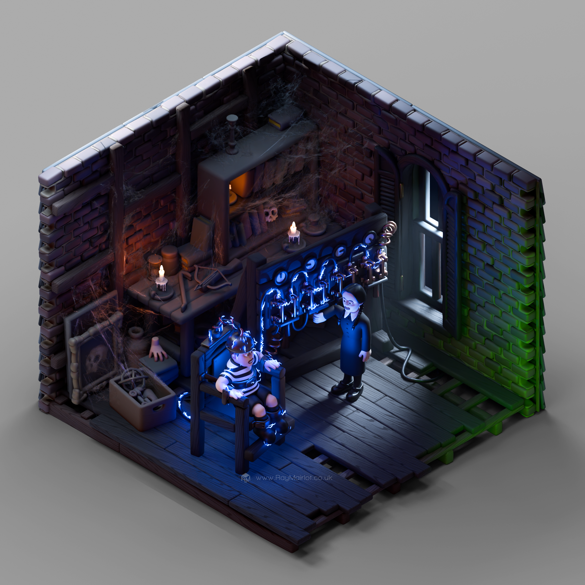 This is my Addams Family House project - a cutaway of the house from the 1991 Addams Family film. As the project continues I update this page with renders of WIPs, props, scenes, and mini projects which I have spun off into their own thing.